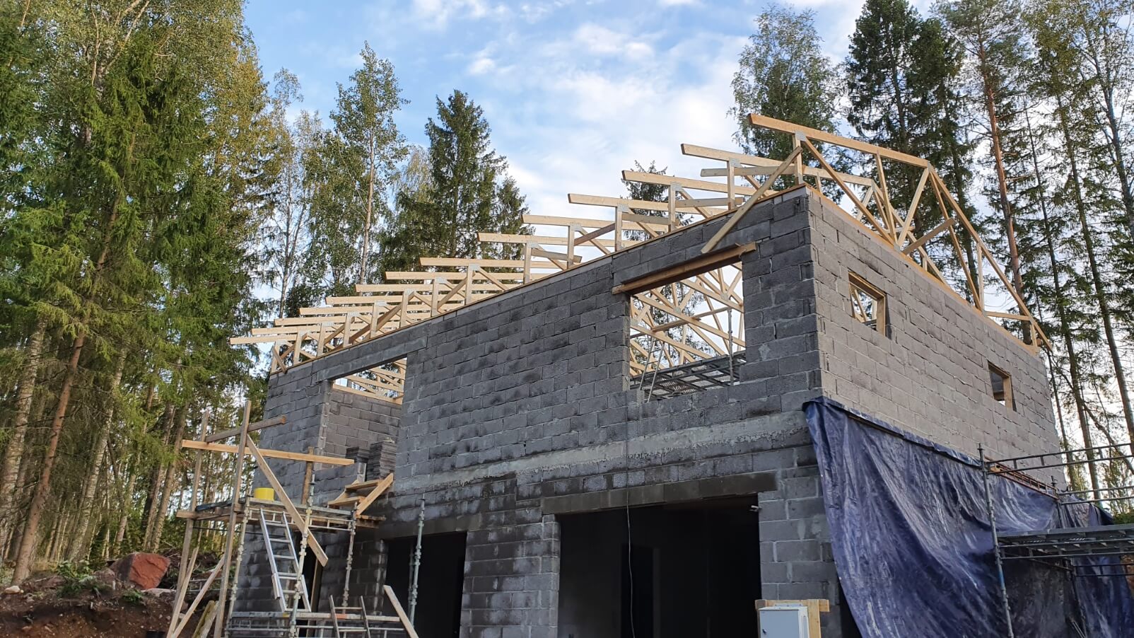 Rakennamme omakotitaloja ja piharakennuksia. Teemme myös yksittäisiä rakennustöitä uudiskohteissa, kuten tulisijojen ja julkisivujen muurausta ja viimeistelyä.